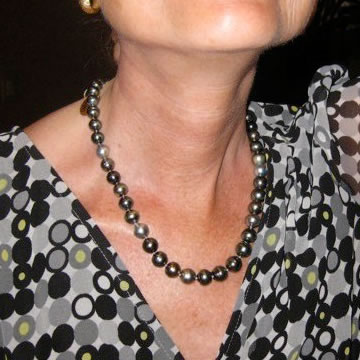 MULTI-COLOR TAHITIAN PEARL STRAND Beautiful Multi-color Tahitian drop shaped strand. We have several in the gallery right now! Setting: 14k Gold Peal Size: 8-9 mm Peal Color: Iredescent peacock color Shape: drop shape Price Range : $1,425.00 - $1,650.00